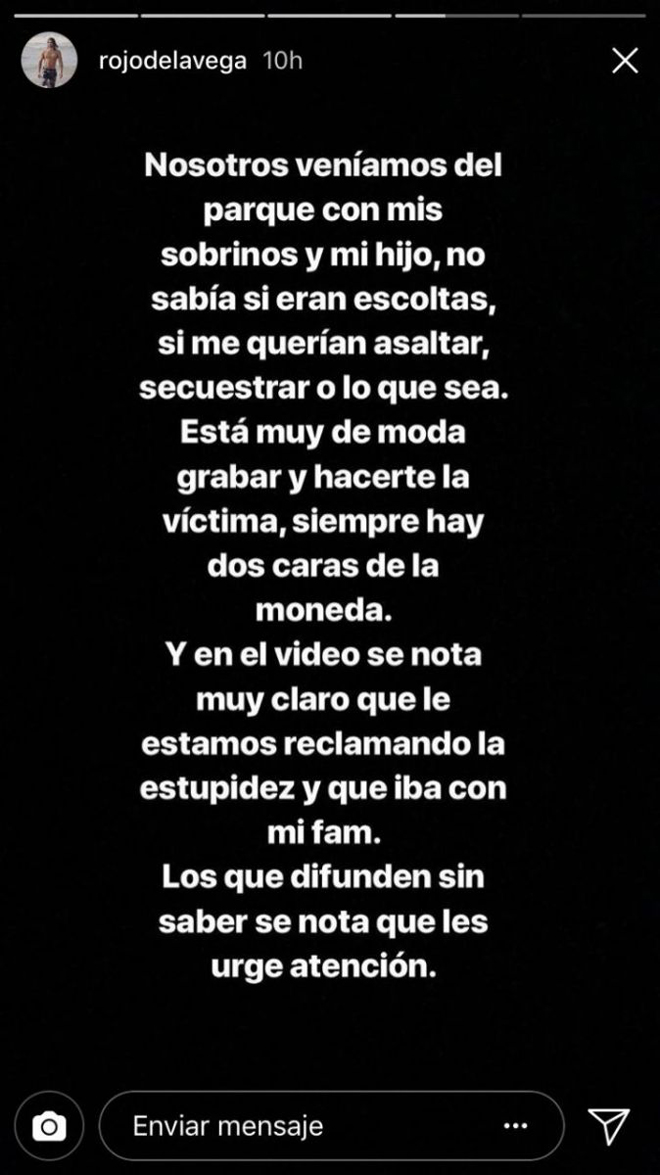 "Está muy de moda grabar y hacerte la víctima, siempre hay dos caras de la moneda. Y en el video se nota muy claro que le estamos reclamando la estupidez y que iba con mi fam". ¿Ustedes lo creen?