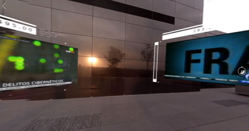 Al mover el cursor dentro del video (o con un visor de realidad virtual) pueden verse varias pantallas a su alrededor.