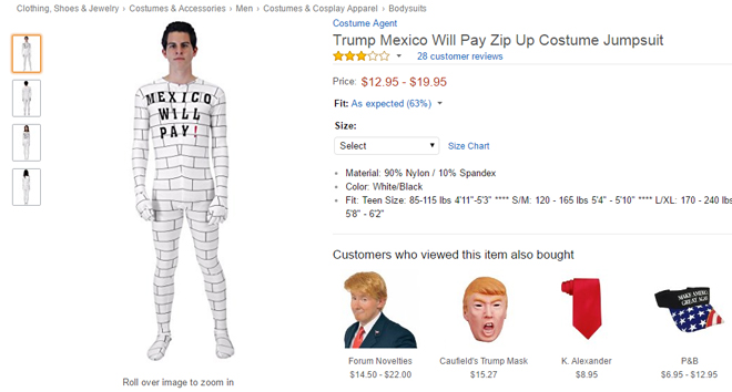 La prenda confeccionada por la firma Costume Agent se comercializa a través de Amazon, por lo que Jeronimo Saldaña inició una petición para solicitar que la compañía de e-commerce deje de venderlo a través de su plataforma.