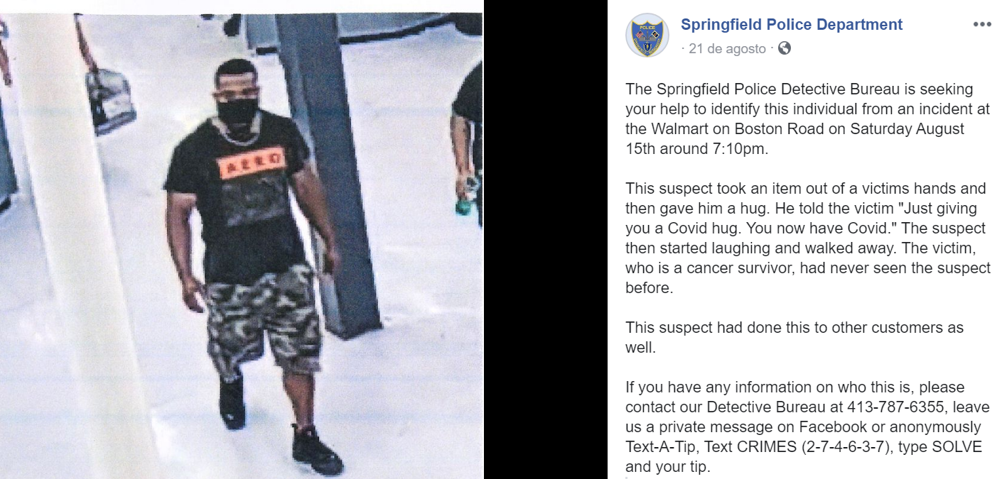 La víctima, quien es un sobreviviente de cáncer, señaló que el hombre le dijo: "sólo te doy un abrazo Covid. Ahora tienes Covid", posteriormente comenzó a reírse y se alejó.