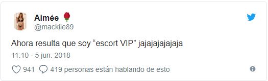 La modelo Aimeé, sin embargo, tuiteó después de que se destapó el escándalo para quejarse de lo que publicaron sobre ella.