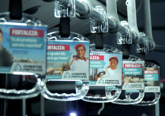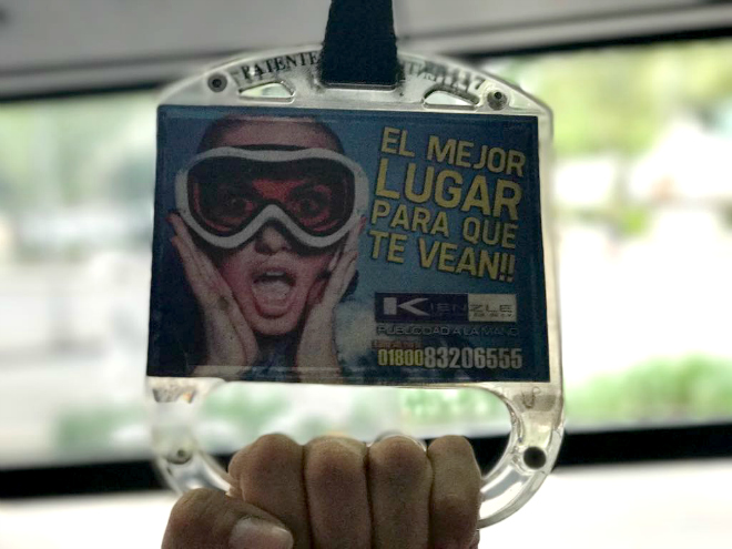 Por años esa 'innovadora estrategia de impactar a millones de usuarios diarios' en forma de agarraderas de plástico transparente que penden de los tubos de los camiones, han sido ignoradas.