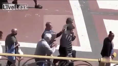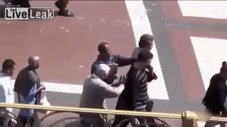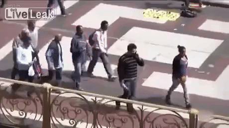 Luego, el que va a arrebatar el teléfono se escuda con otro criminal listo para empujar a la víctima y desorientarla.