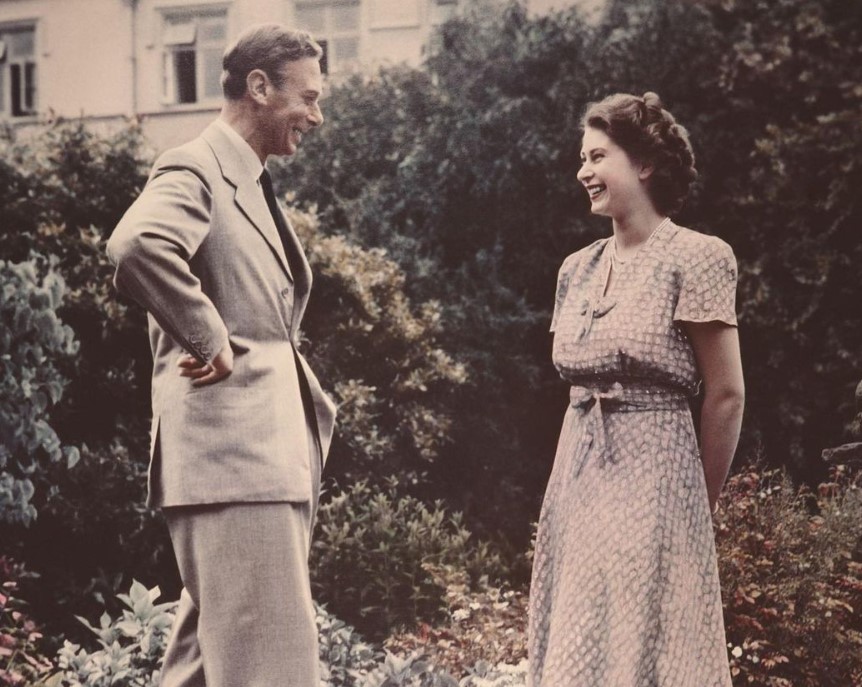 La reina Isabel II con su padre en 1946.