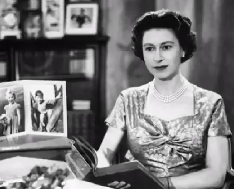 La reina Isabel II en 1957 dando un mensaje de Navidad.