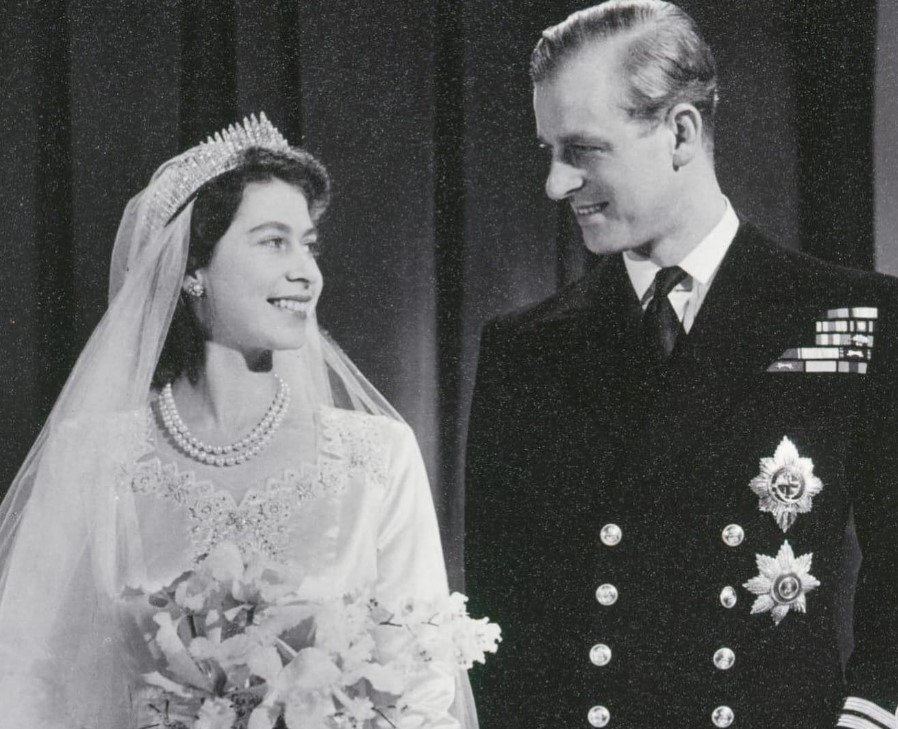 La reina Isabel II y el duque de Edimburgo en su boda.