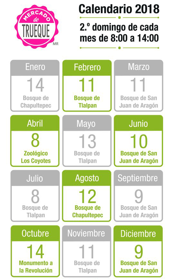 Los Mercados de Trueques son ya una tradición, ya que se realizan desde 2012 de manera mensual. A continuación, te compartimos las fechas en que se llevarán a cabo este 2018: