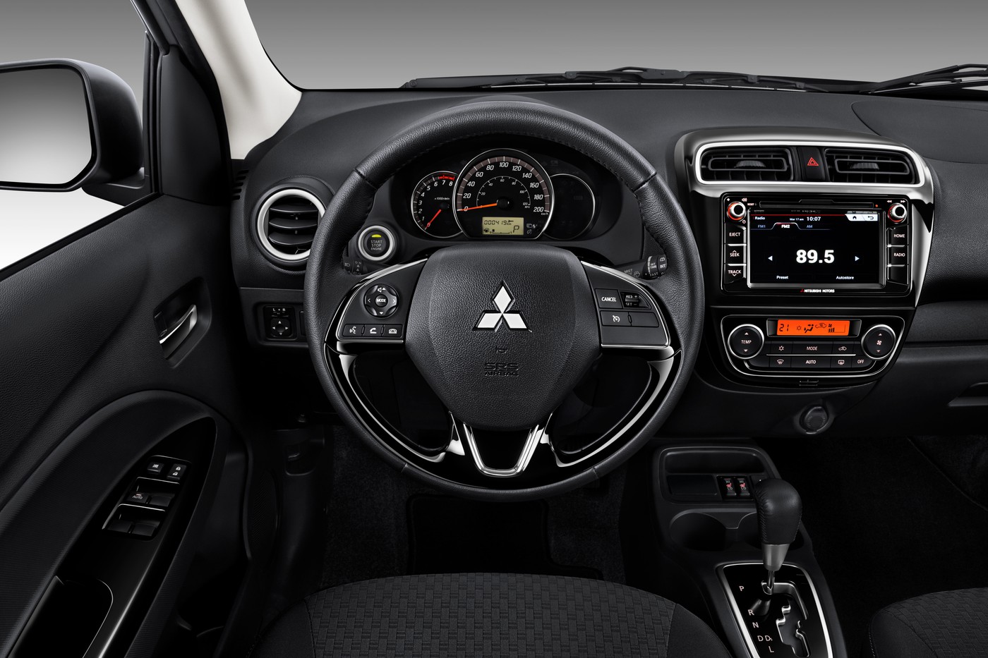 La versión manual incorpora un motor de tres cilindros, dos bolsas de aire y frenos antibloqueo, además de computadora de viaje, faros antiniebla y sistema de sonido con CD y Bluetooth.