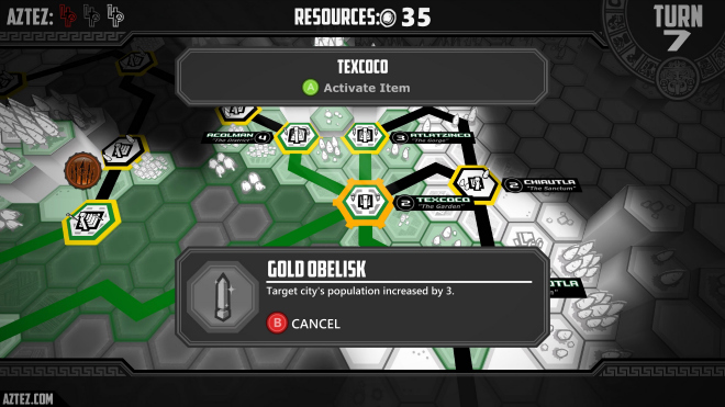 Otro llamativo aspecto del juego es el de la administración del imperio a través de los distintos pueblos y ciudades sometidas al yugo de los mexicas, así como también el intercambio comercial entre todas las ciudades.
