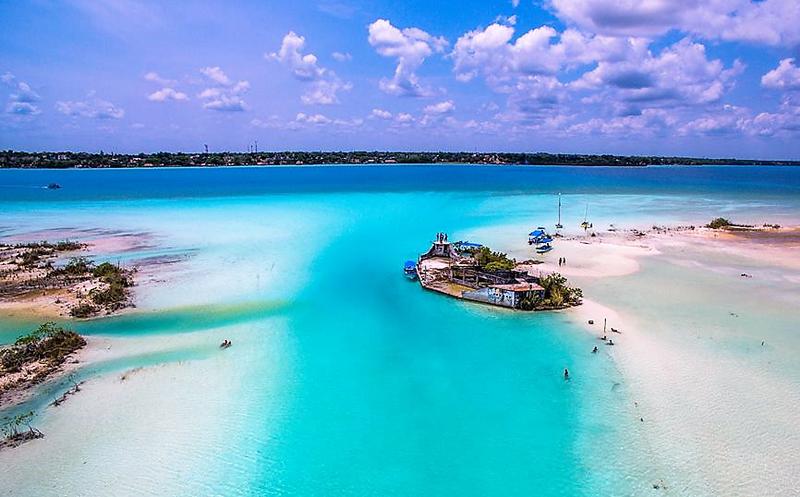 La Laguna Bacalar, ubicada en Quintana Roo se distingue porque a simple vista se pueden apreciar siete distintas tonalidades de azul.