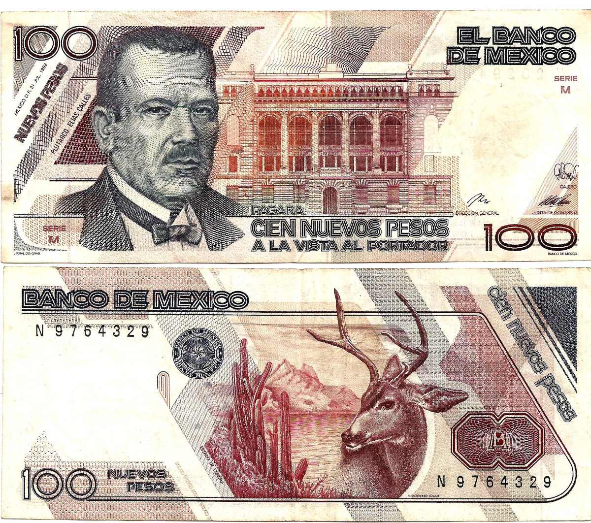 La familia B también incluyó un billete de 100 nuevos pesos con la imagen de Plutarco Elías Calles con un diseño similar al billete de 100 mil pesos.