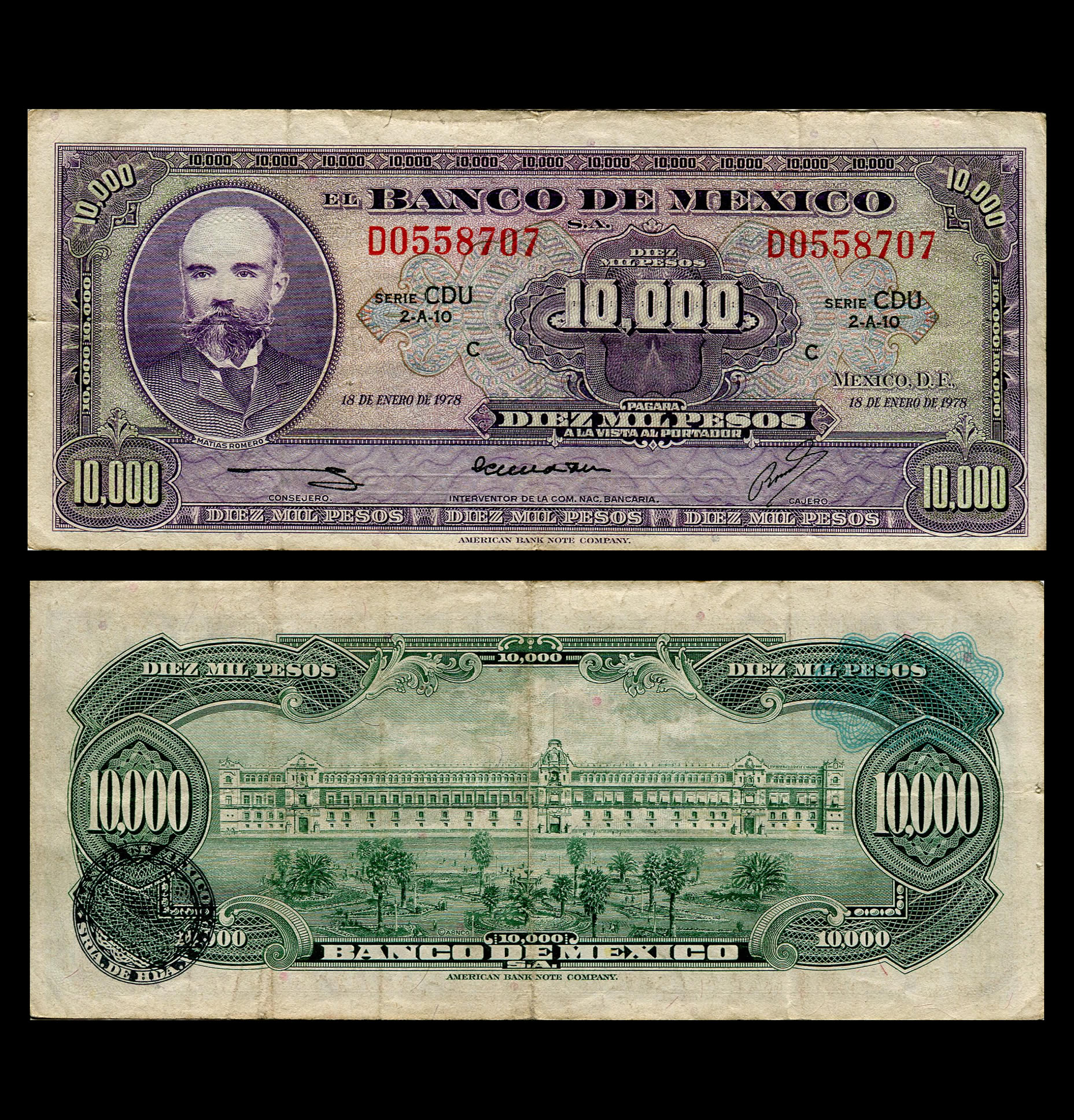 De 1936 hasta 1978 circuló en México un billete de 10 mil pesos, perteneciente a la familia AA, que tenía la imagen del diplomático mexicano, Matías Romero.