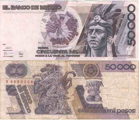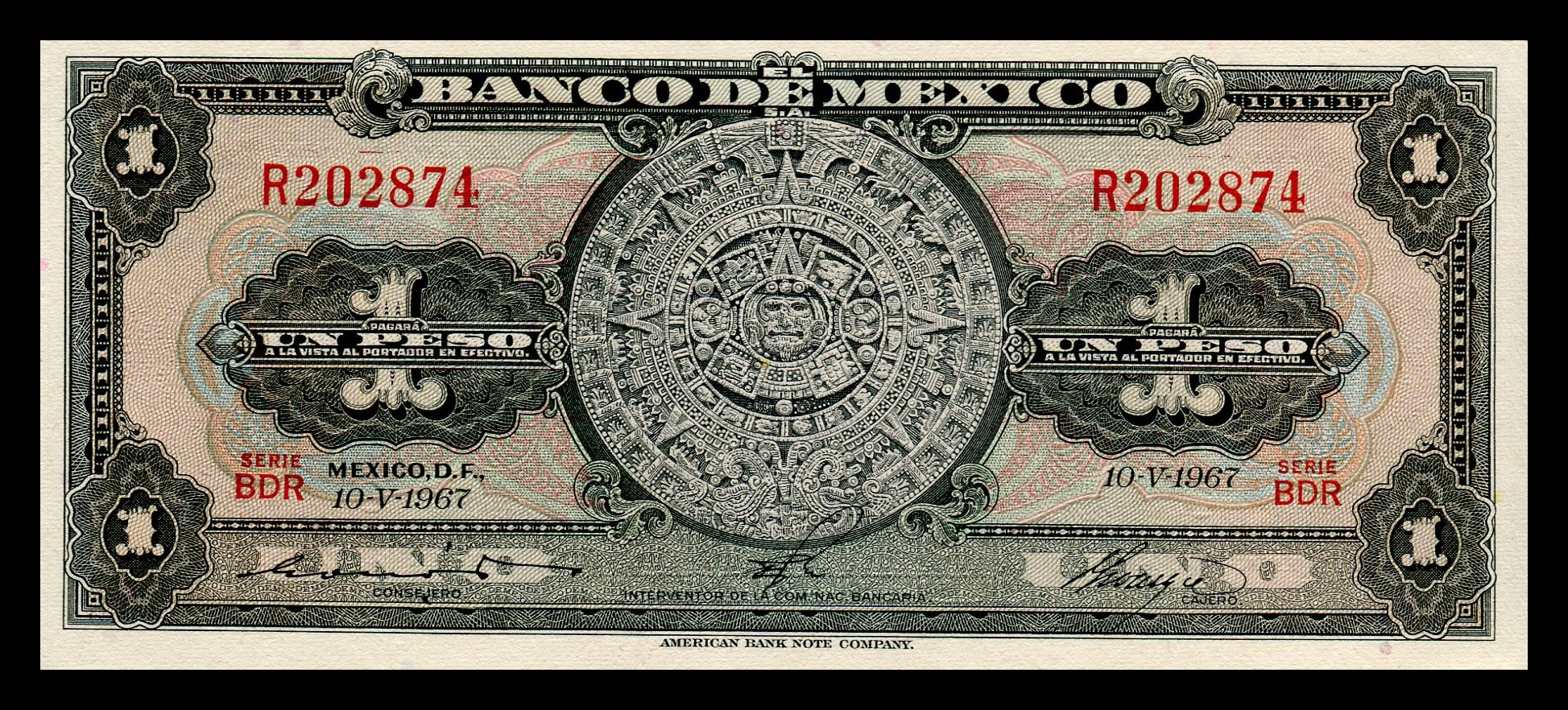 Hasta 1978 también llegó a circular un billete de 1 peso, que tenía un calendario azteca.