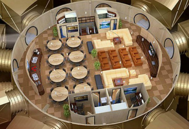 Este novedoso y lujoso búnker se encuentra estratégicamente ubicado a 48 kilómetros de un aeropuerto para que los residentes lleguen en avión y posteriormente se desplacen en camiones blindados hasta el refugio.