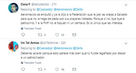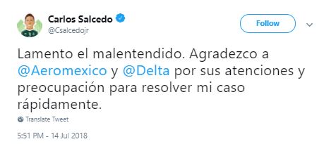 Horas después de publicarlo, Salcedo borró el tuit de su cuenta y publicó otro lamentando "el malentendido" y agradeciendo a las aerolíneas por su atención.