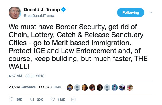 Trump parece no dejar a un lado la idea de edificar una barrera fronteriza, recientemente compartió vía Twitter que el muro se debe construir ‘”mucho más rápido” para detener la migración ilegal.