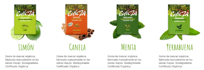 Por lo tanto, el chicle natural ya no es parte de su composición, sólo lo contienen en un 5 a 7%, en comparación al casi 40% de goma orgánica que contiene Chicza. Sus componentes naturales también le permiten desintegrarse en cuestión de semanas en comparación a los demás que tardan hasta cinco años.