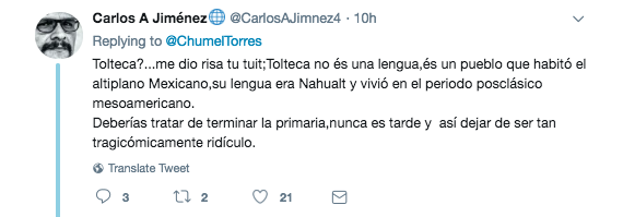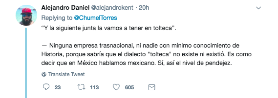Y como Internet no tiene piedad, las reacciones no se hicieron esperar, para empezar le recordaron que Tolteca no es una lengua: