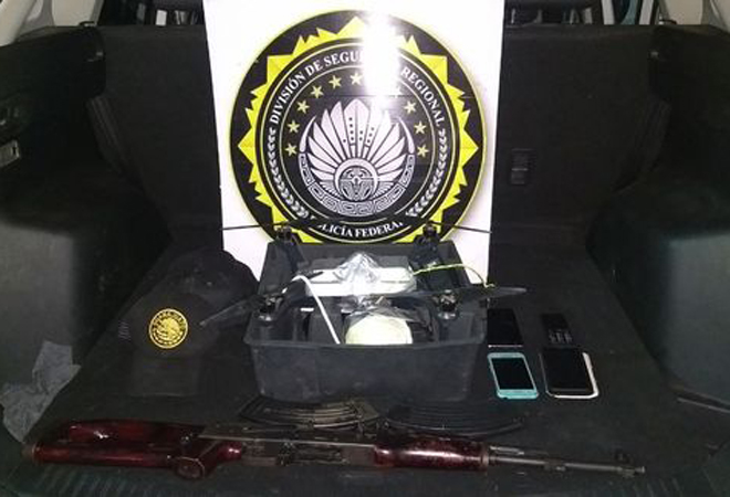 Al revisar la cajuela, las autoridades encontraron el dron marca Fly 3DR adherido a un explosivo con un detonador de radiofrecuencia, además de un AK-47 con dos cargadores y 13 cartuchos sin percutir.