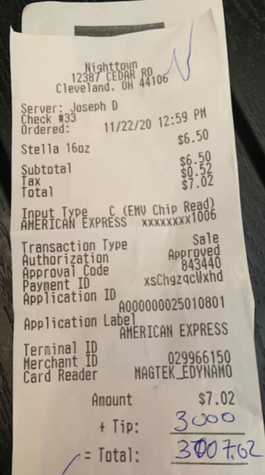 So just before we closed today at Nighttown a customer walked in and ordered a beer and asked for the check and handed... Publicado por Brendan Ring en Domingo, 22 de noviembre de 2020