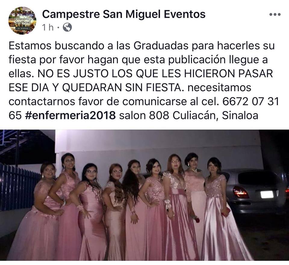 Resulta que las alumnas de la Escuela de Enfermería de la Universidad Autónoma de Sinaloa se arreglaron para asistir a su graduación, pero al llegar al salón donde se armaría el festejo...¡Oh, sorpresa! Descubrieron que nada se había pagado.