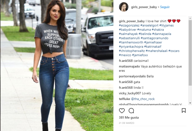 No es la primera vez que se le ve a Eiza portando camisetas feministas, en sus Instagram ha posteado fotografías con prendas de Laura Sfez.