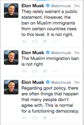 En las publicaciones, el CEO de Tesla y Space X dijo que la orden migratoria "no estaba bien".