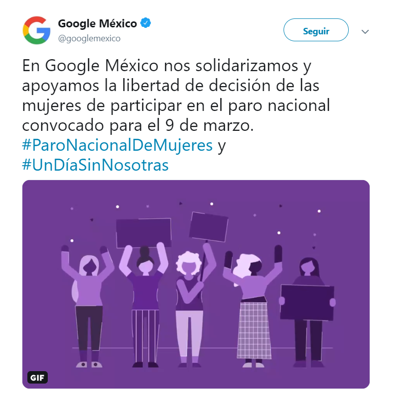 Google México también se solidarizó con las mujeres que decidan participar en el paro del 9 de marzo.