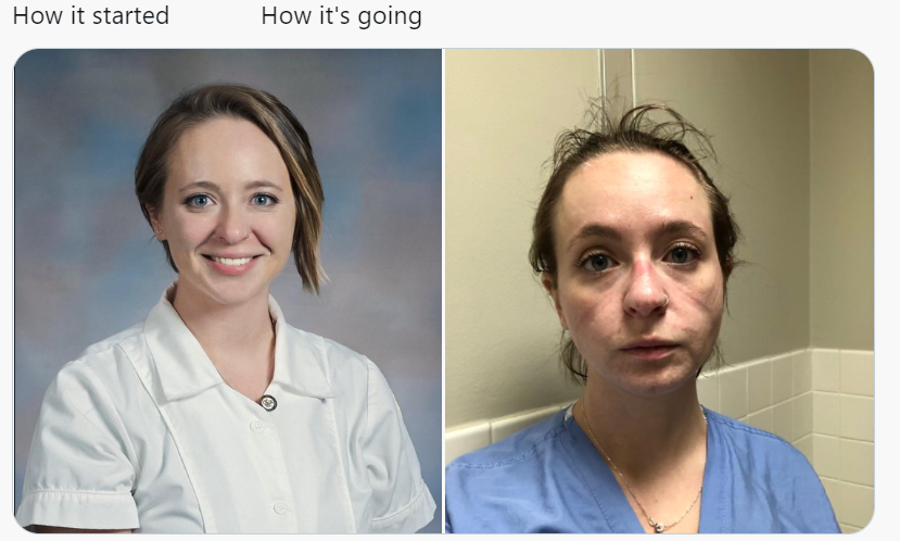 El personal de salud de todo el mundo no ha tenido descanso desde que inició la pandemia de COVID-19 y una enfermera decidió mostrar cómo ha sido su cambio físico.