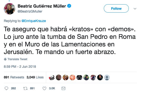 Por lo que Beatriz Gutiérrez Müller respondió; que puede estar tranquilo, ya que su esposo no busca destruir la democracia.