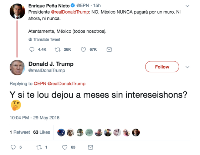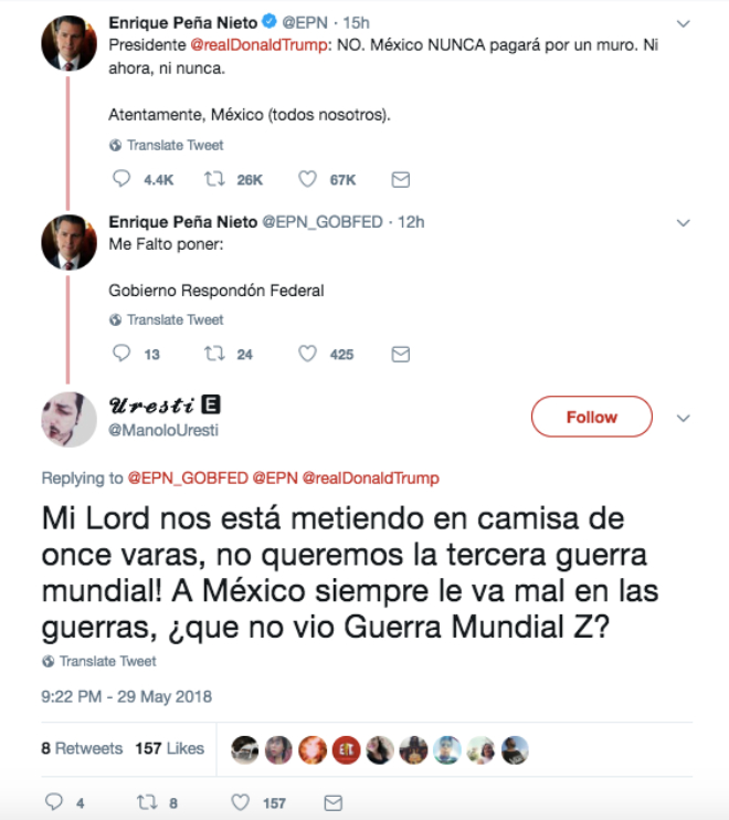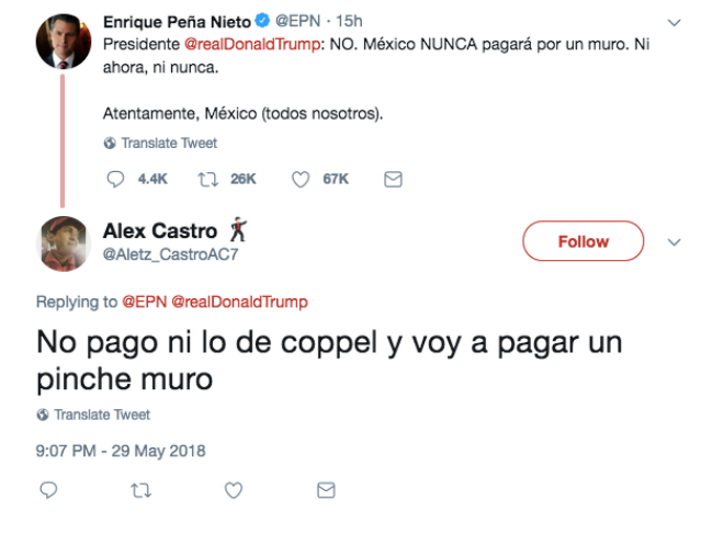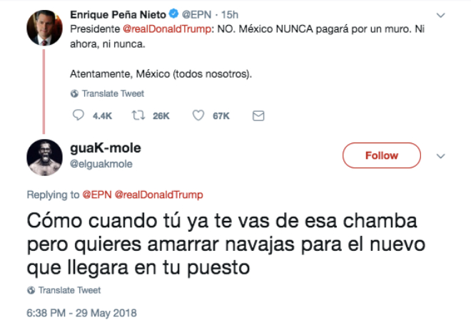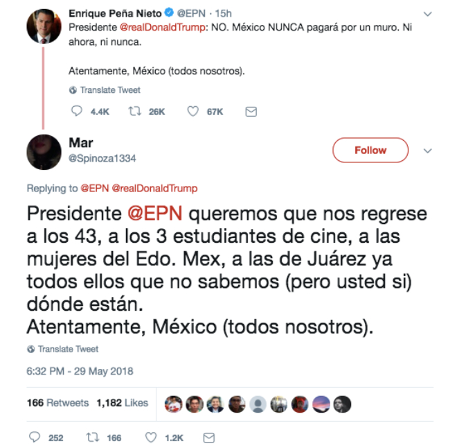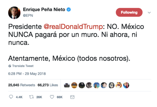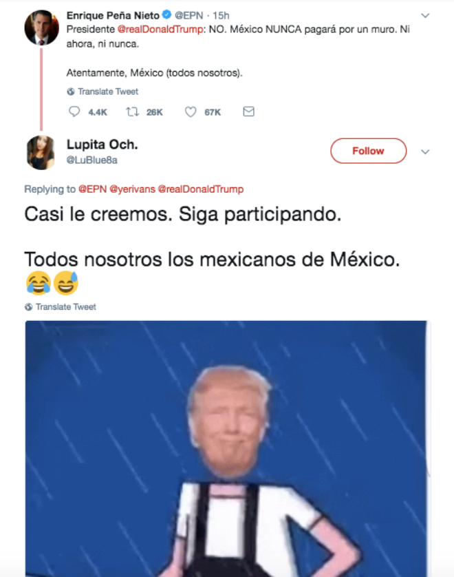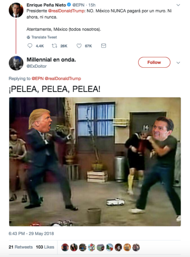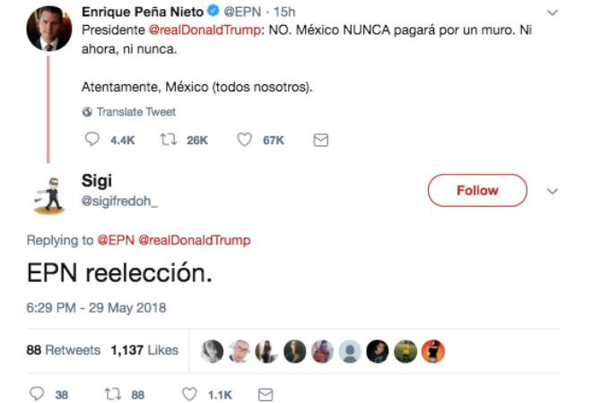 Una de la maravillas de las redes sociales es la libertad de expresión y a pesar que EPN trató de defender a México contra las declaraciones del presidente de Estados Unidos, la comunidad tuitera no se guardo nada y así contesto: