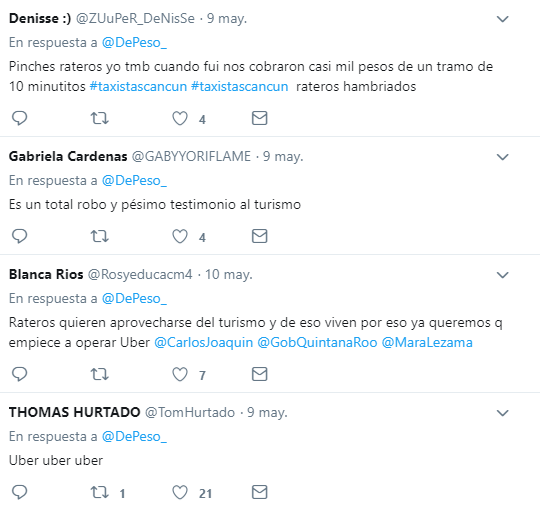 Ante la situación, las turistas tuvieron que pedir apoyo de policías, quienes intentaron buscar un acuerdo, pero al no lograrlo fueron trasladadas junto con el trabajador a la Fiscalía General de Estado para resolver el problema. En el video que difundió el diario local De Peso se observa a las turistas explicando a los policías que ya le habían pagado al taxista 2 mil 500 pesos por el servicio, pero les seguía exigiendo que completaran los 4 mil 500 pesos.Tras la viralidad del caso, algunos usuarios comentaron que este tipo de abusos de los taxistas son comunes y por eso quieren que entren plataformas de taxi privado.?#Cancún| ¡Completa estafa! Taxista de la unidad 4944 exige el pago de 4500 pesos a turistas peruanas por llevarlas de la Zona Hotelera a la Región 96. (?Video: C. Calzada) pic.twitter.com/WxX5xBsX50