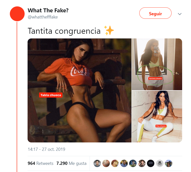A través de redes sociales la cuenta What The Fake?!, que cuenta con 21 mil seguidores en Twitter y 95 mil en Instagram,se aseguró que las fotos de la actriz Bárbara del Regil estaban editadas.