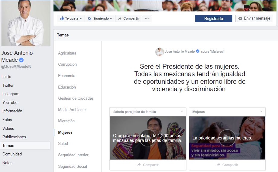 Para verlas, sólo debes dirigirte a la página oficial del candidato (Meade, Anaya, 'El Bronco' o AMLO) y darle clic al apartado Temas debajo de su nombre y foto de perfil: