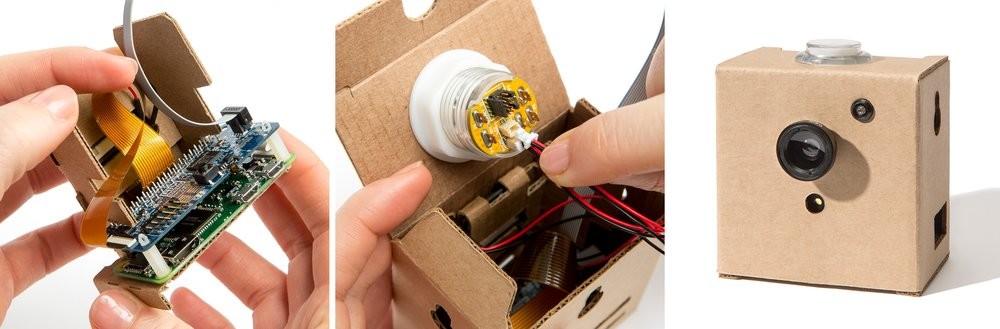 Vision Kit consiste en una cámara con reconocimiento de imagen que no necesita estar conectada a la nube para funcionar, ya que cuenta con su propio modelo de red neuronal interior, todo en un peculiar empaque de cartón.