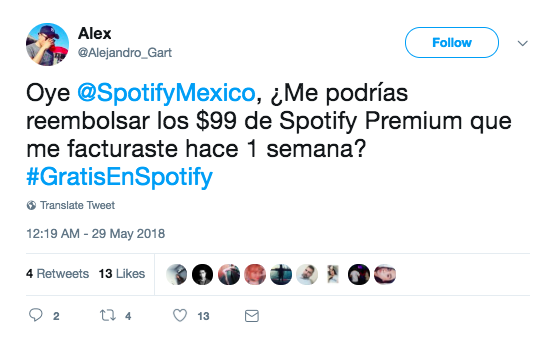 El hashtag #GratisEnSpotify es parte de la estrategia del servicio de música para promocionar la actualización de su servicio gratuito, donde los usuarios podrán acceder a funciones que antes sólo estaban disponibles para versiones pagadas.
