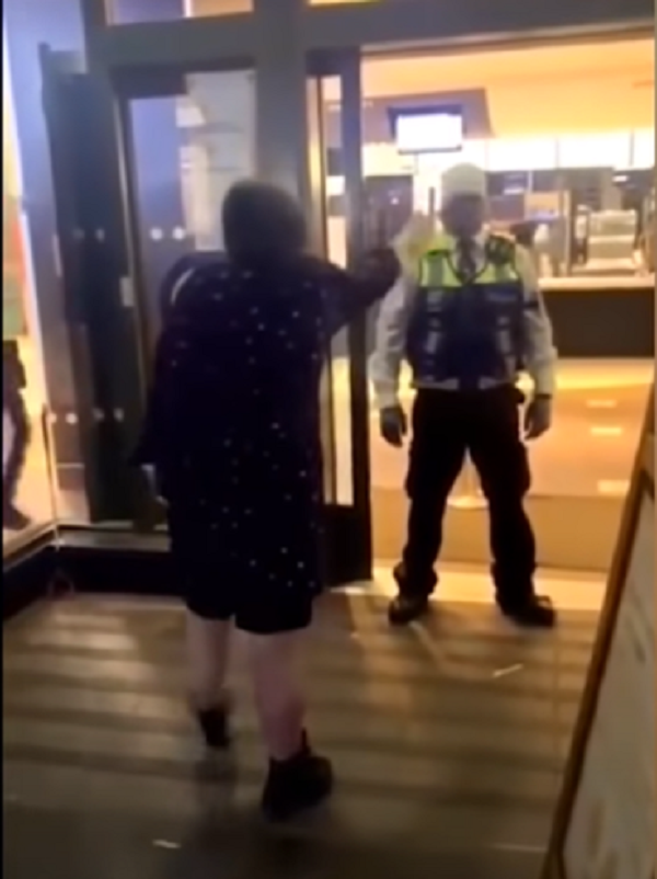 Un guardia de seguridad de un McDonald's fue captado mientras golpeaba a una mujer que le aventó los restos de su bebida en la cara.
