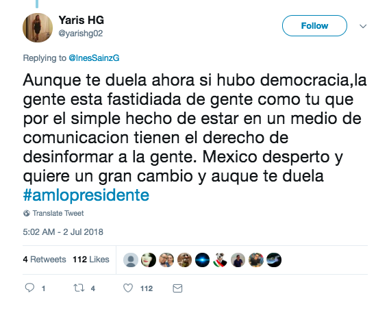 La conductora publicó en su cuenta de Twitter este mensajito que bien se puede interpretar a favor de Andrés Manuel, pero parece que nadie se lo creyó, pues le llovieron una cantidad de comentarios tachándola de hipócrita.