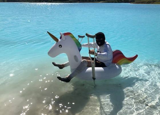 Alexei Sherenkov fue uno de los primeros jóvenes en subir una foto en el lago y teminó con una irritación en los pies.