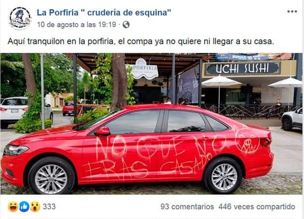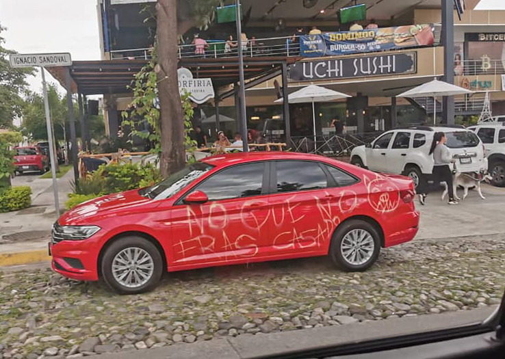A través de redes sociales se viralizó la fotografía de un auto Jetta 2019 color rojo, al que le pintaron la leyenda "No que no eras casado", lo que desató memes en redes sociales.