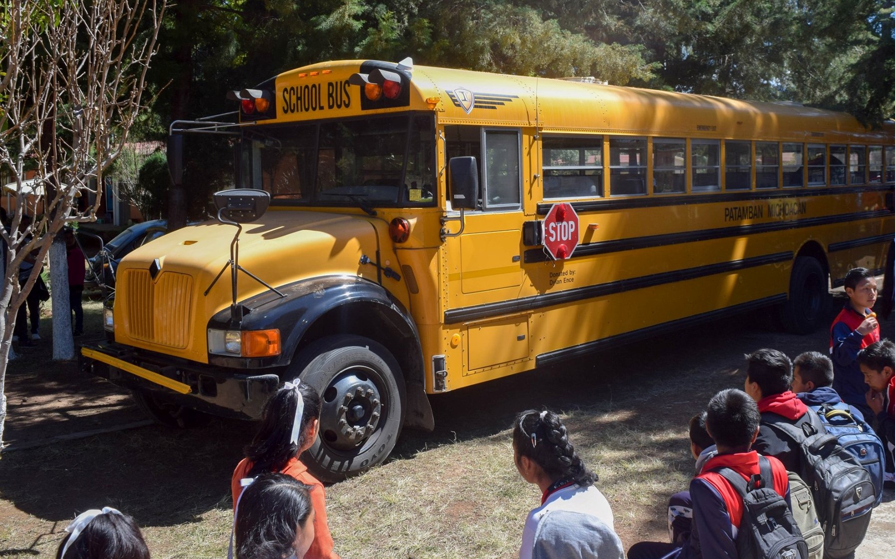 Dylan Ence, un joven de 19 años originario de Utah, Estados Unidos, sorprendió a estudiantes de la comunidad de Patamban en Tangancícuaro, Michoacán al regalarles un autobús escolar y útiles.