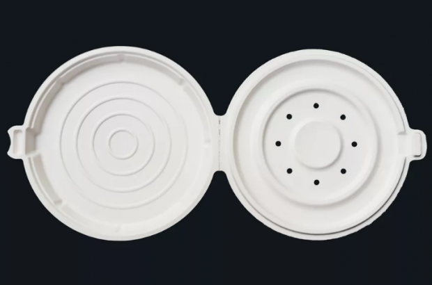 Además, el empaque cuenta con pequeños hoyos que ayudan a que la humedad salga del contenedor y así poder conservar la pizza crujiente. Además tiene aros concéntricos para dejar que pase el aire entre la pizza y la caja.
