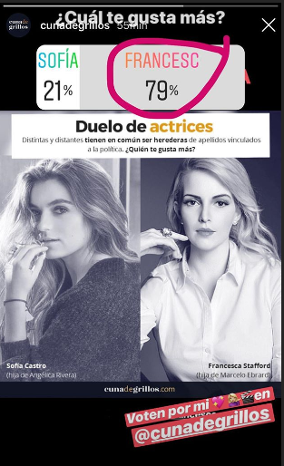 Francesca, de 30 años, estudió psicología en la Universidad Anáhuac, pero decidió ser actriz y eligió el nombre artístico de Francesca Stafford, mismo con el que aparece en sus