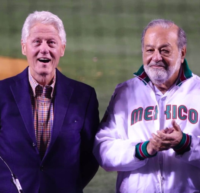 El magnate acudió a la inauguración de la Serie del Caribe y ahí se encontró a varios de sus amigos, entre ellos: el expresidente de Estados Unidos, Bill Clinton; el boxeador Saúl "Canelo" Álvarez, y otros hombres de negocios.