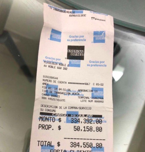 Pero antes de que envidies profundamente al mesero, debemos decirte que en realidad la cosa no ocurrió así. El voucher es de un restaurante en Monterrey y el propio Arturo Elías Ayub, yerno de Carlos Slim, confirmó que la cuenta no era suya.