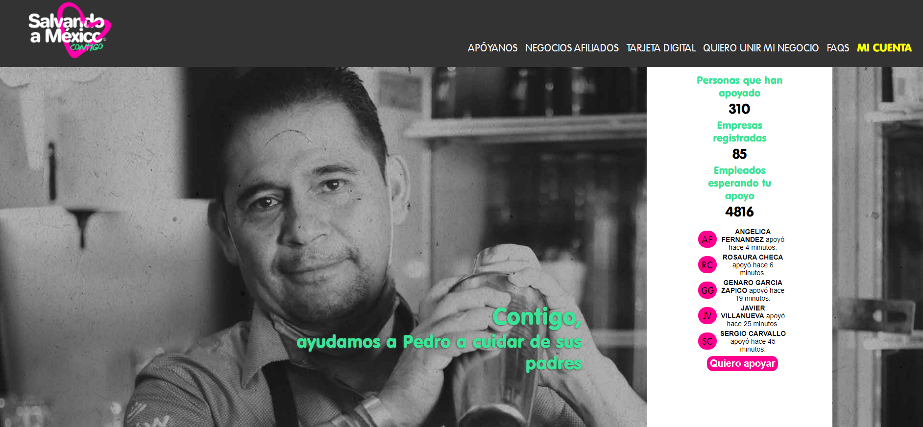 Cuando el usuario ingresa a la plataforma decide a cuál negocio desea apoyar, esto a su vez ayuda a financiar el salario de los empleados.