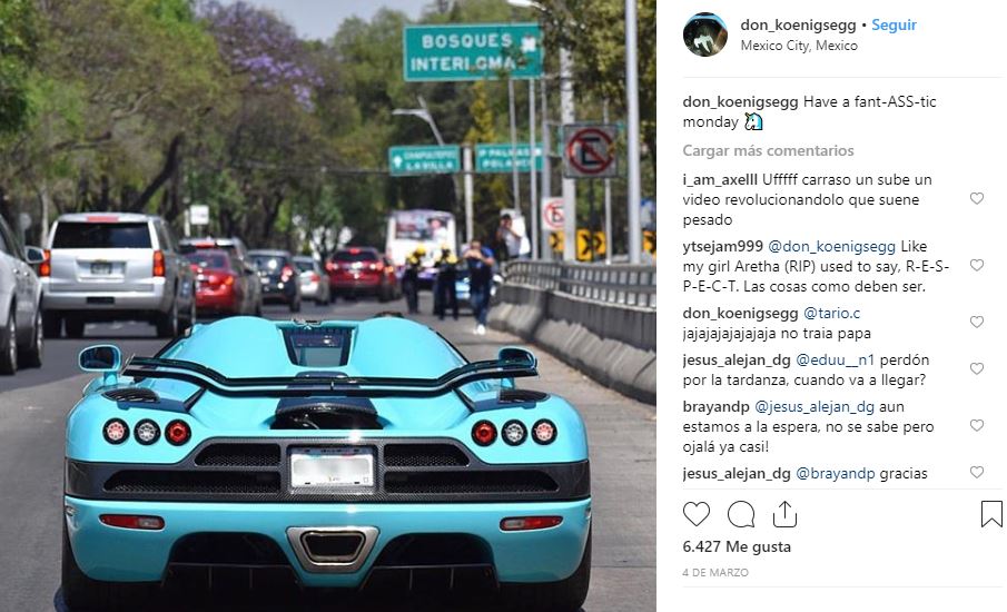 De acuerdo con José Ramón Zavala, especialista en automóviles, el CCXR era conducido por un usuario que se identifica en Instagram como @don_koenigsegg, donde compartía fotos de su vehículo.