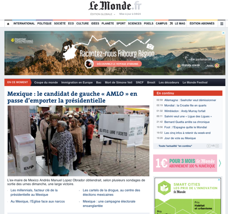La prensa internacional estuvo muy al pendiente de lo que pasaba con las votaciones en México y destacaron el amplio triunfo del tabasqueño sobre sus adversarios.