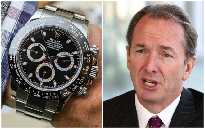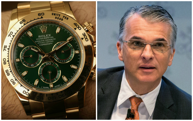 Hablando de Rolex Daytona, el CEO de la firma suiza de servicios financieros UBS también lleva uno, pero en versión dorada que cuesta $13,995 dólares.