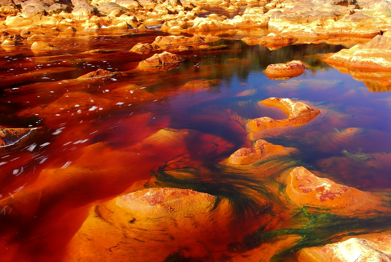 El Río Tinto, España. Llama la atención por el color rojizo de sus aguas y por su similitud con el ambiente de Marte.